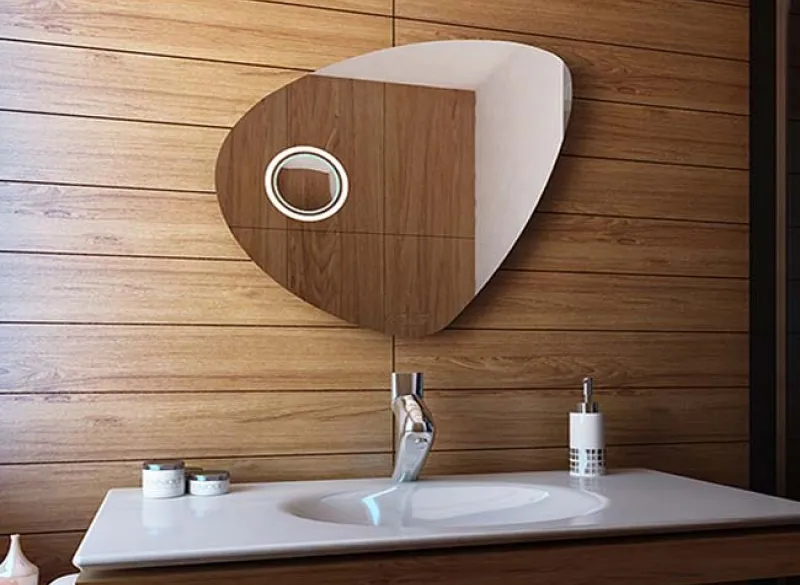Įdomesnių formų veidrodžiai dažniausiai gaminami su išsklaidytu apšvietimu, suteikiančiu interjerui jaukią atmosferą. Ypač puikiai atrodys moderniame vonios kambaryje. Aplinkos apšvietimas suteikia atsipalaidavimo, todėl vonios kambario patalpa tampa dar labiau komfortiška.